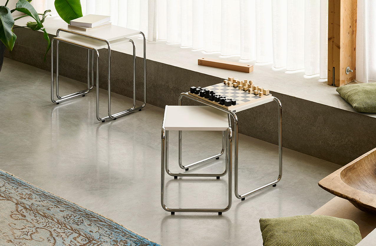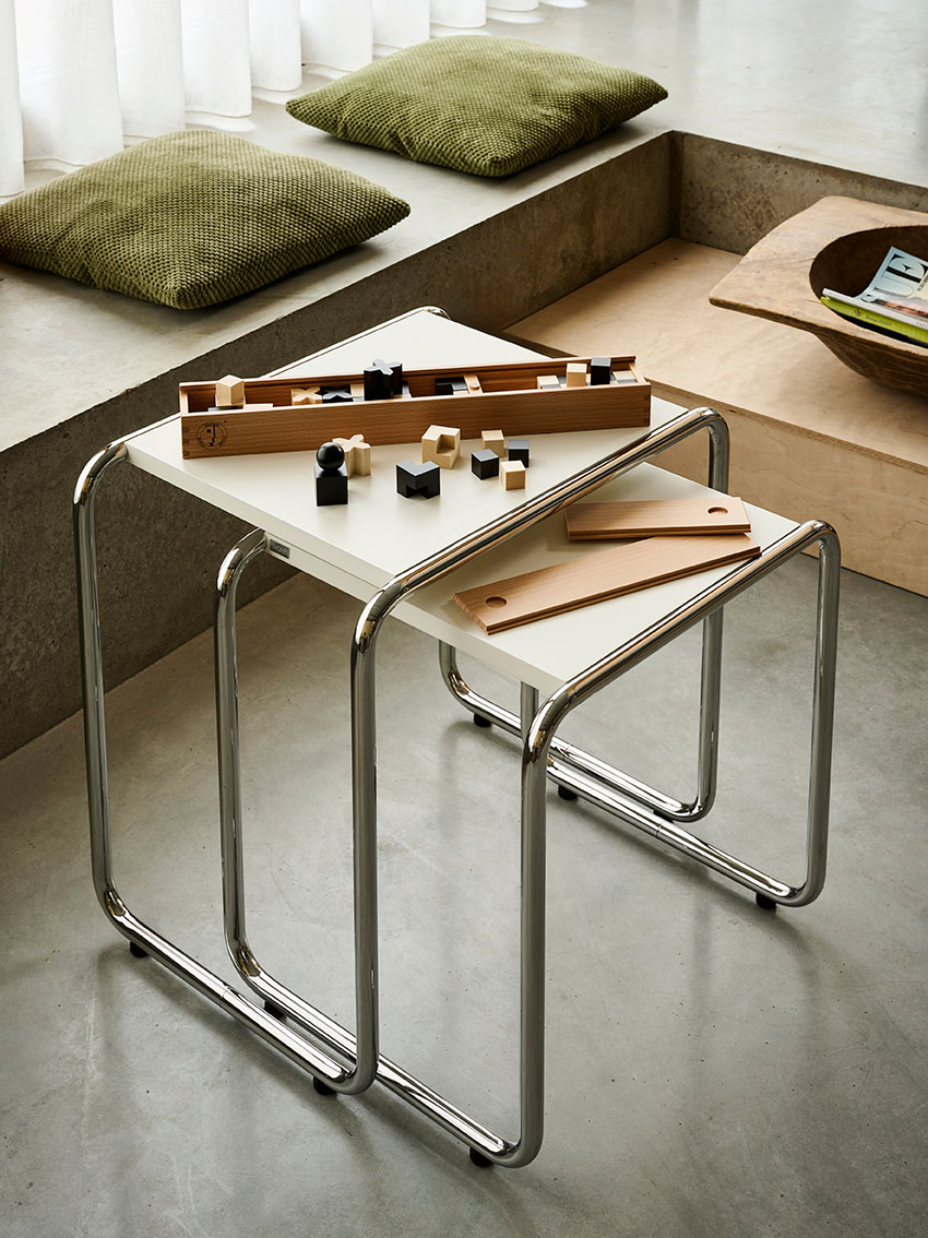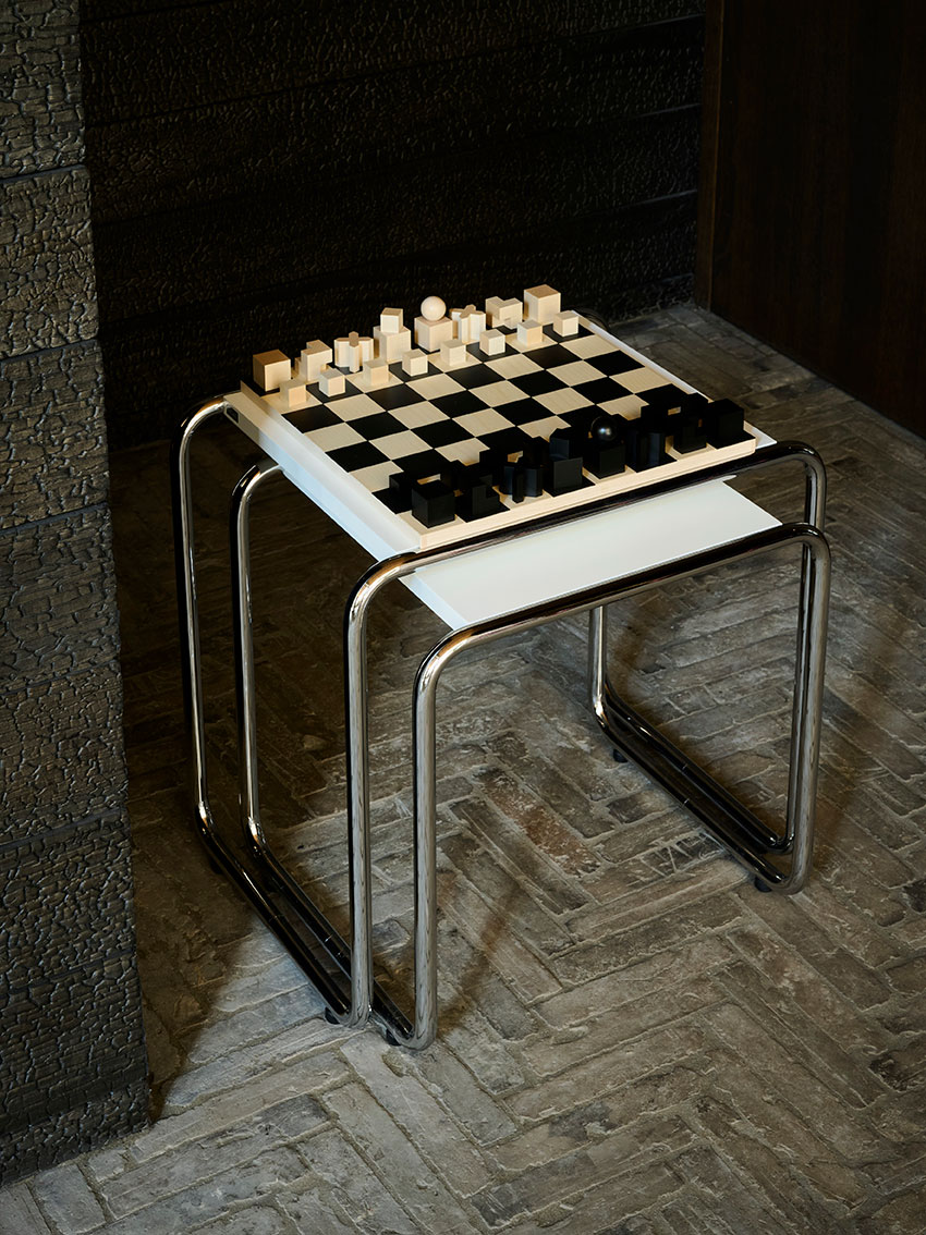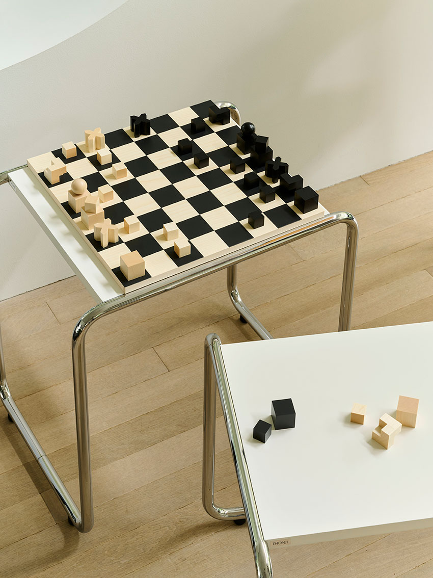 Beim Kauf eines Beistelltisch Set B 9 a+b in Esche schwarz (TP 29) gebeizt oder Esche offenporig reinweiß (RAL 9010) lackiert schenken wir Ihnen die Bauhaus Schachfiguren von NAEF im Wert von 305 €. Die hochwertige Schachtel enthält 32 Figuren und ist eine Original Bauhaus Replik von NAEF in Zusammenarbeit mit dem Bauhaus-Archiv Berlin. Die Aktion ist limitiert auf 100 Stück und nur gültig im teilnehmenden Fachhandel und nur im Aktionszeitraum vom 1. Oktober 2025 – 31. März 2026. Nur solange der Vorrat reicht.